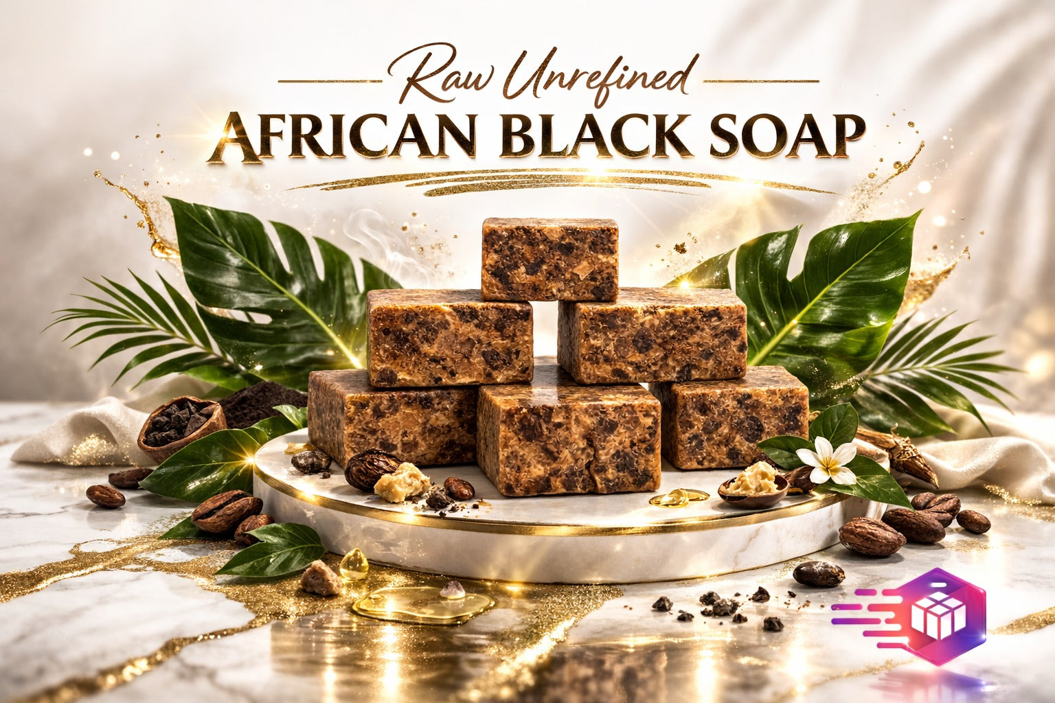 Raw Unrefined African Black Soap Experience the power of traditional African skincare with our 100% raw, unrefined, and organic African Black Soap. Crafted using time-honored methods, this natural cleansing bar helps remove impurities, balance oily skin, and support a clearer, healthier complexion.